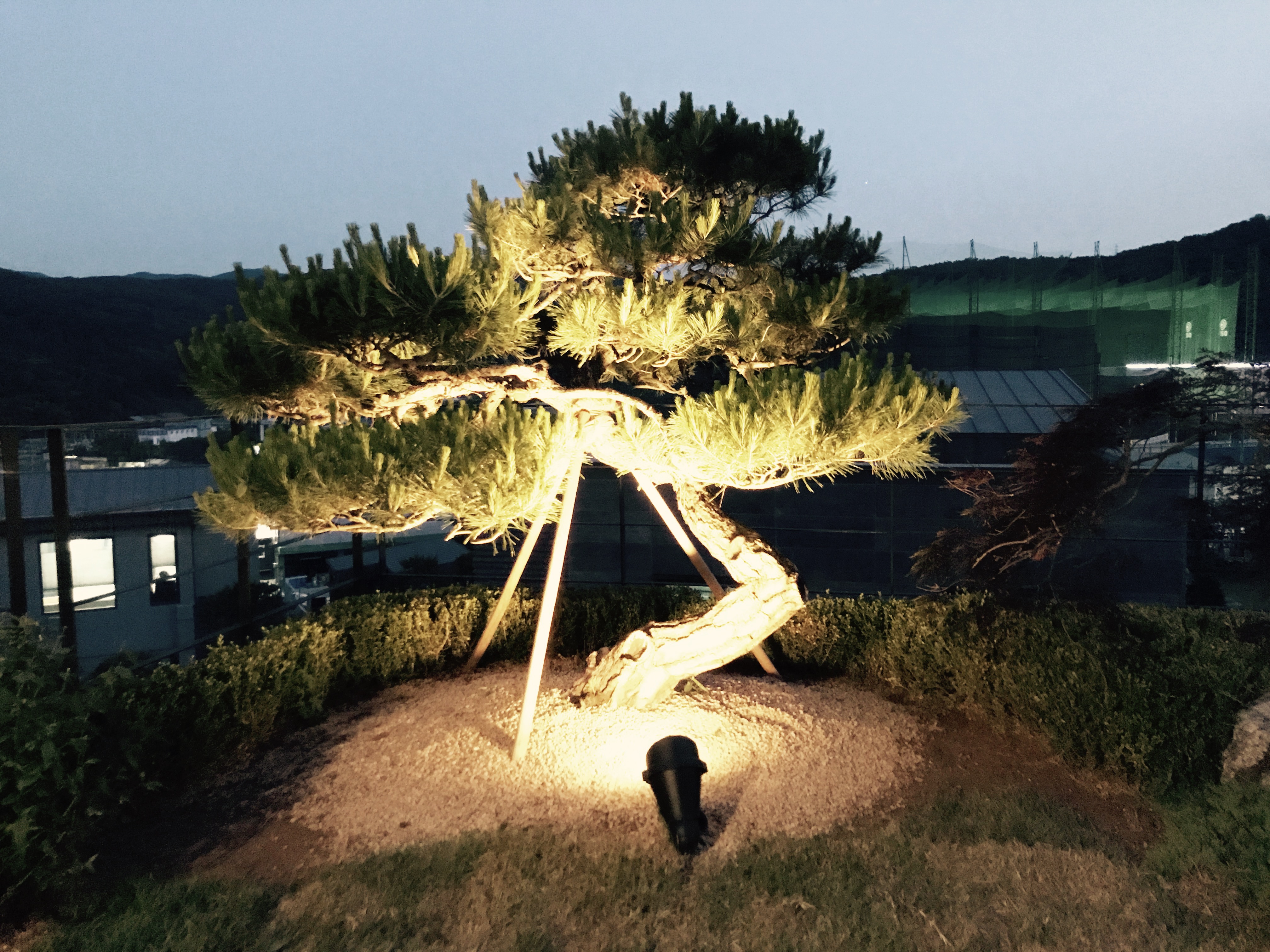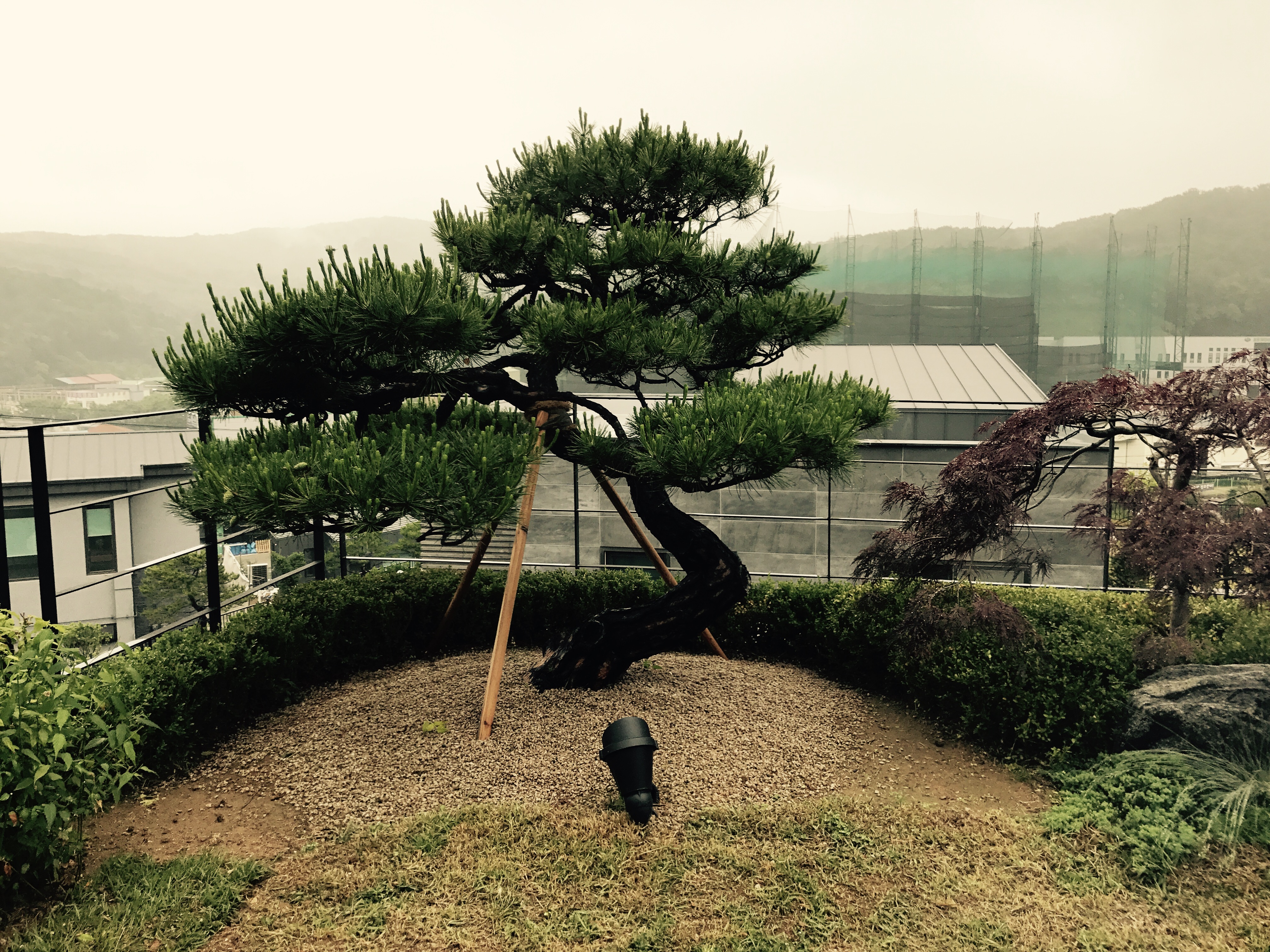 전통 정원에서 소나무는 늘 중심 수목이었고, 선비의 절개와 사계절 푸름을 상징하며 마당의 격을 세우는 나무였습니다. 요즘 정원 트렌드는 그라스류와 자연주의 식재로 흐르고 있지만, 조형이 좋은 소나무 한 그루가 주는 경관적 무게감은 어떤 수종으로도 대체가 어렵습니다. 이 현장은 주차장 상부 인공지반이라는 조건 위에 조형 소나무를 올리고, 시공부터 약 5년간 직접 관리하며 계절마다 변해가는 모습을 기록하였습니다. 뒤로 빠지는 산세와 어우러져 해가 갈수록 자리를 잡아가는 과정을 보며, 소나무는 과거의 나무가 아니라 여전히 현재의 정원에서도 살아 있는 주인공이라는 걸 다시 확인한 현장이었습니다.